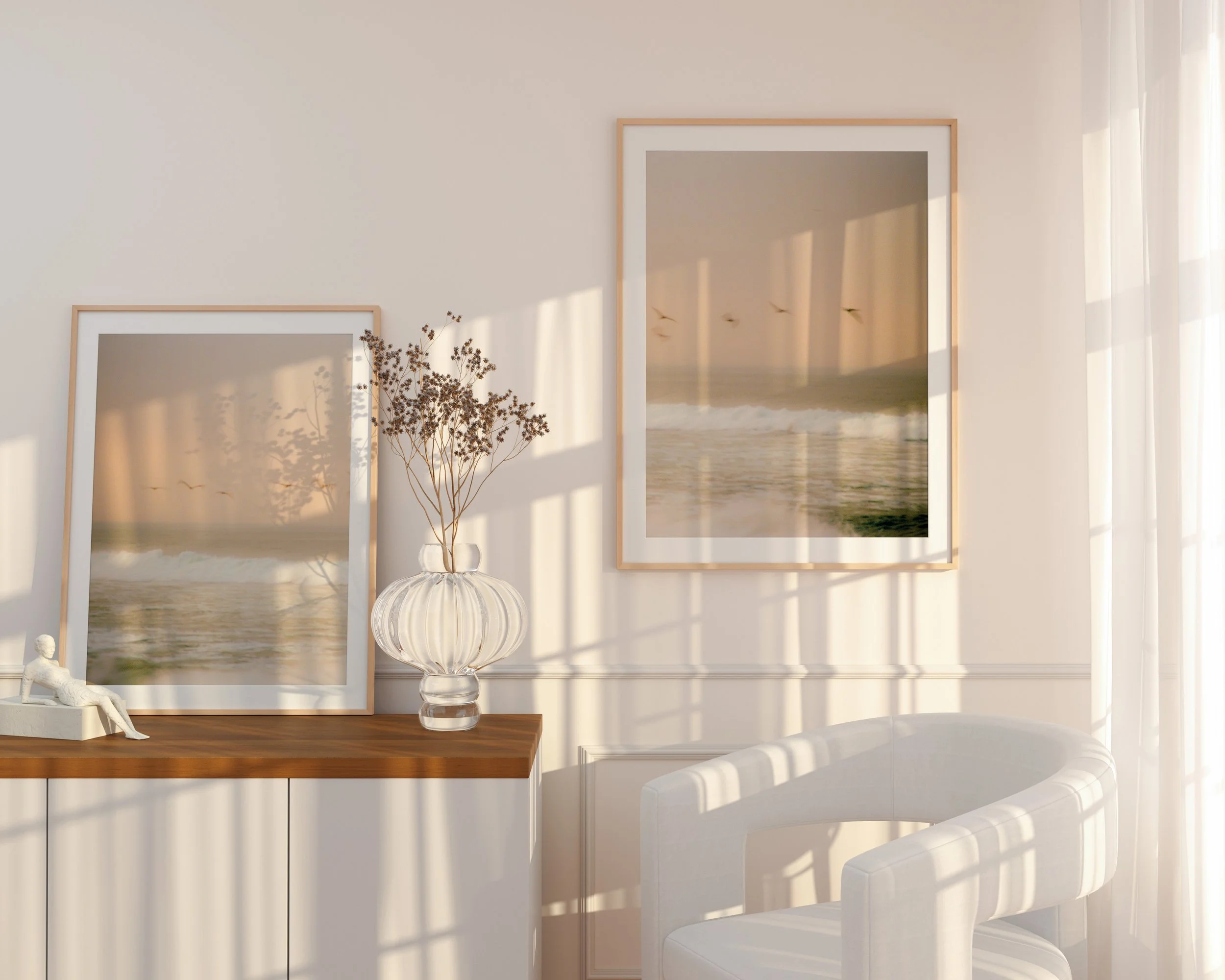 We all have those days. Those times when life seems to be overflowing with anxieties and we just need things to slow down for a moment. A pause, a reprieve, just a little room to breathe. It is during those moments that we almost always turn to the serene art of the natural world to find relief. Feeling the cool breeze of the ocean and the sand beneath our feet. Listening to the powerful gushes of air grow louder and then fade away as a bird approaches, flapping its wings a few feet in front of your face. We watch in awe as the sun sinks low, and we find the moment of peace we were searching for. The photographs in Soft Scenes reflect moments such as these, bringing the beauty of the outdoors home in an understated and tasteful way.